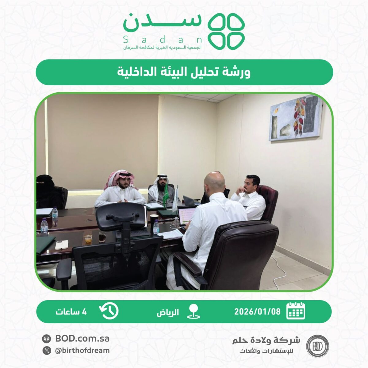 يناير 12, 2026ورشة معرفة الوضع الحالي وتحليل البيئة الخارجية لجمعية سدنجانب من ورشة معرفة الوضع الحالي وتحليل البيئة الخارجية” لجمعية سدن، في مرحلة إعداد الخطة الاستراتيجية، وذلك ضمن عقد إعداد […]