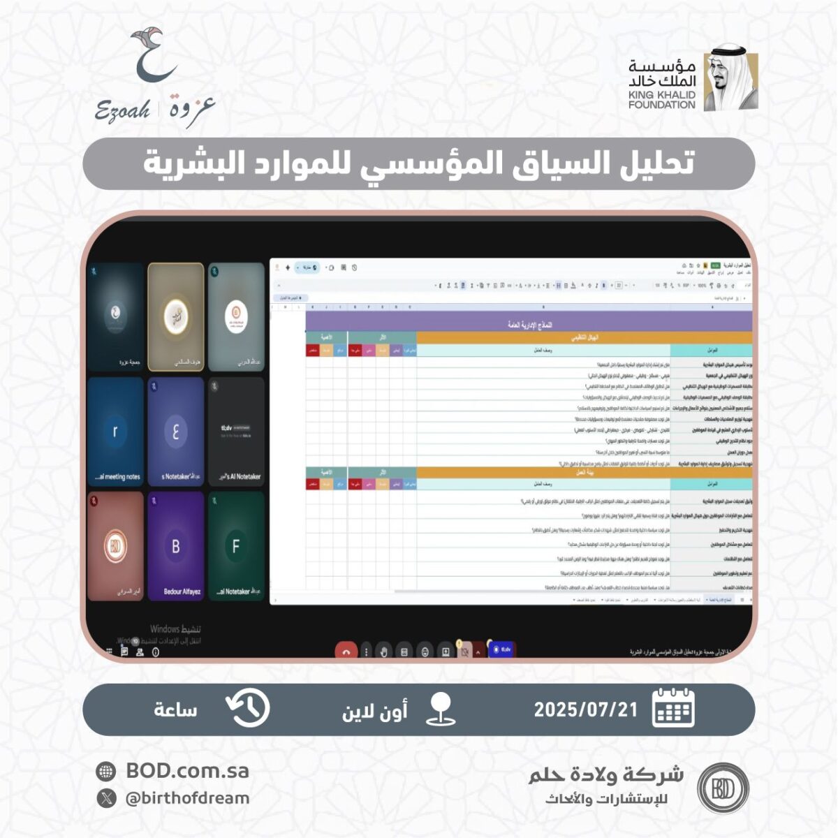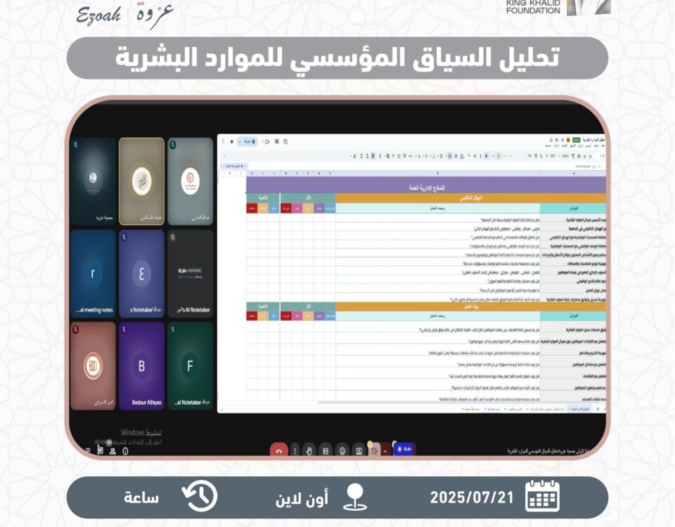 يوليو 21, 2025تحليل السياق المؤسسي للموارد البشريةجانب من تحليل السياق المؤسسي للموارد البشرية لجمعية عزوة للحماية الأسرية ضمن مشروع الاحتضان الكامل التابع لمؤسسة الملك خالد