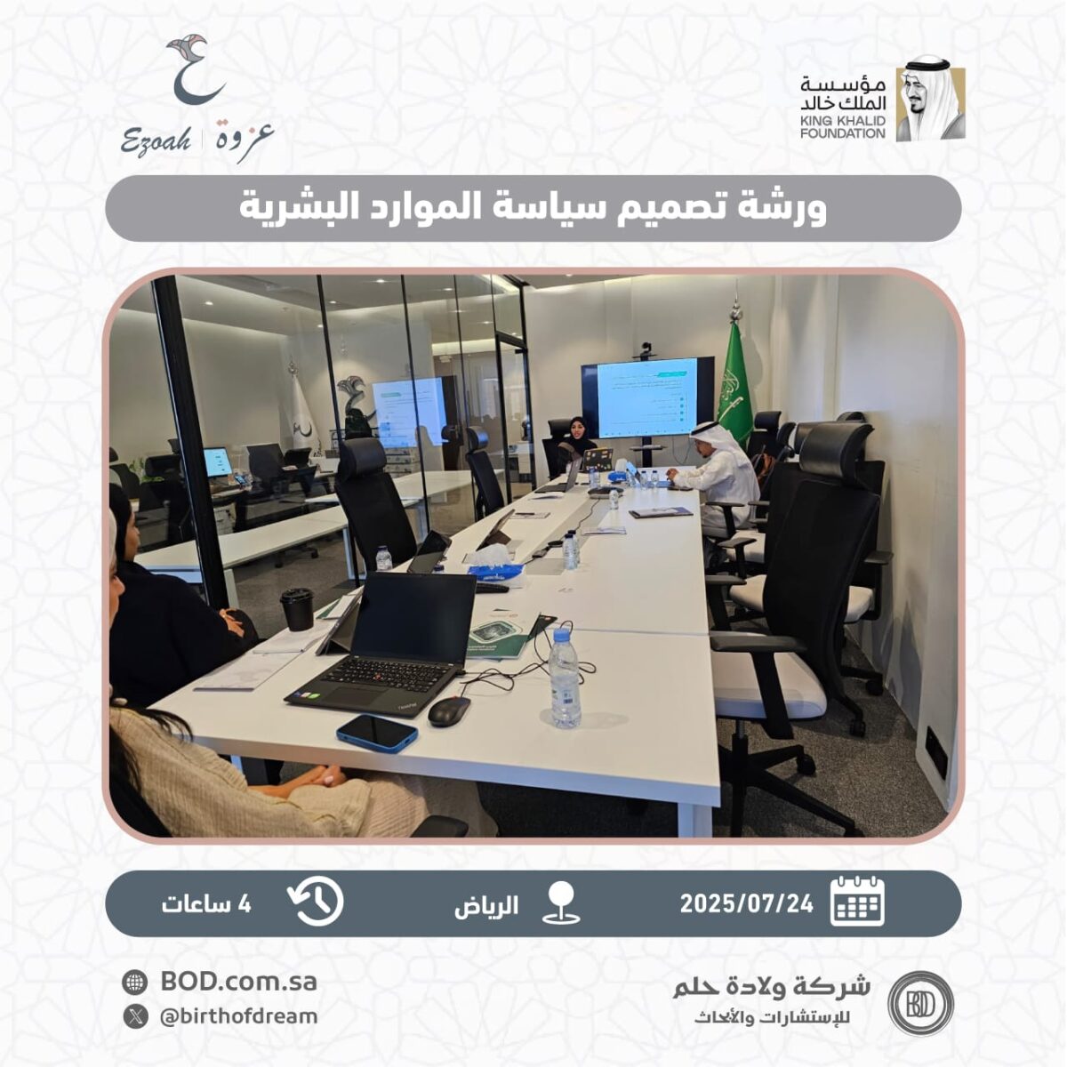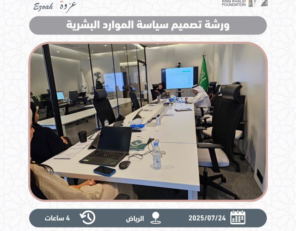 يوليو 30, 2025ورشة تصميم سياسة الموارد البشريةجانب من ورشة تصميم سياسة الموارد البشرية لجمعية عزوة للحماية الأسرية،والتي تناولت: – تحليل وتوصيف الوظائف: جمع المعلومات، إعداد الوصف […]